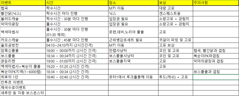 각 이벤트별 시간정리 v1 mu73.cc 뮤프리서버 프리뮤 뮤프리섭 서버2025년