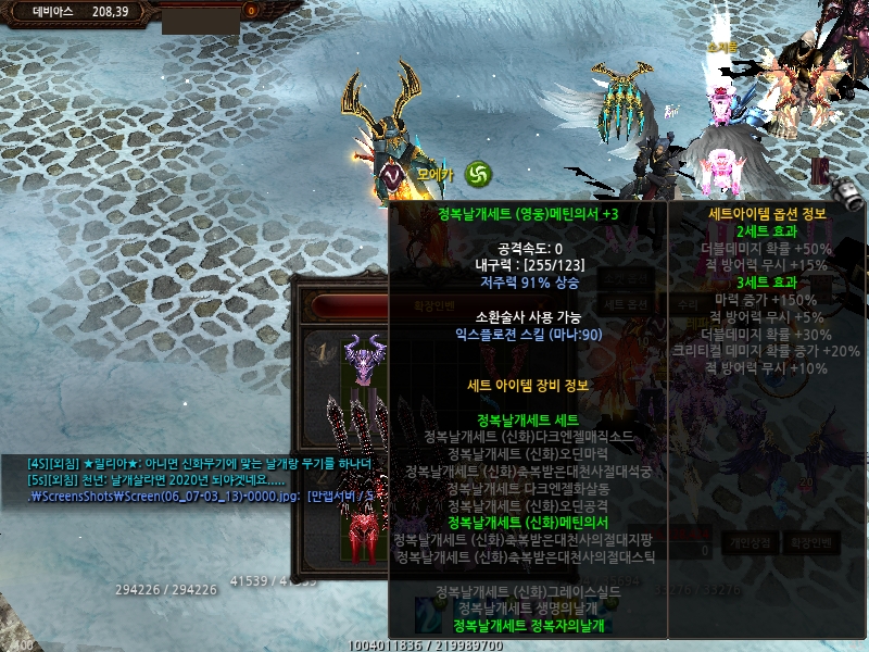 정날셋트 인데 신화템이 아니고 영웅템으로 적혀 있음... 더불어 정날셋 옵션도 적용이 안되네요...