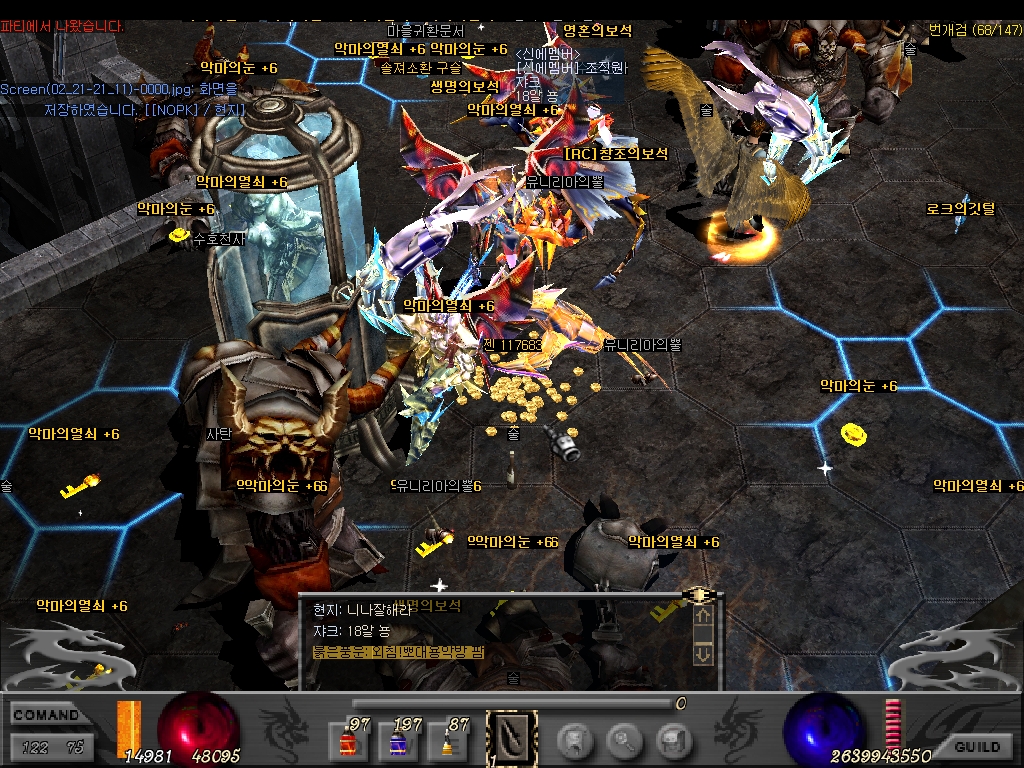 만랩 인증시 케릭터 모습 + C창 케릭명+ 컨트롤A버튼 마스터랩 나오는 사진 으로